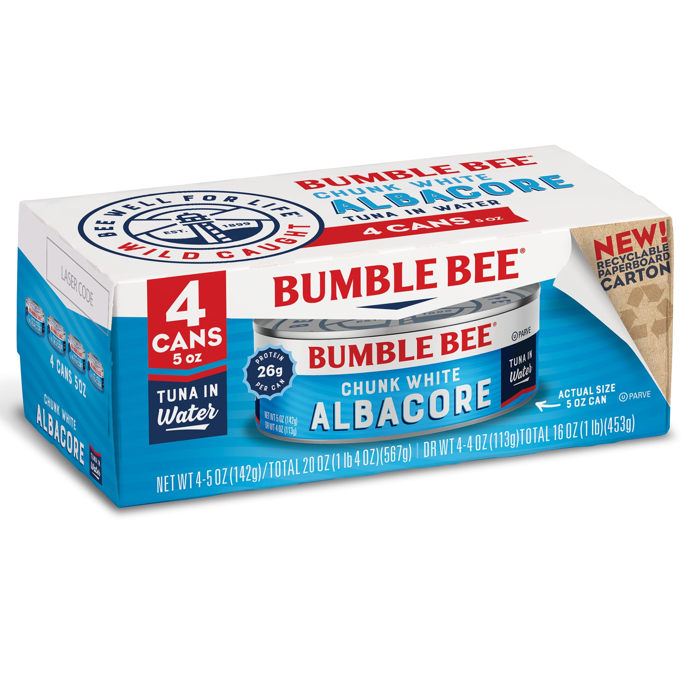Pack Of 4 Bumble Bee Chunk White Albacore Tuna In Water 5 Oz Cans Walmart Com